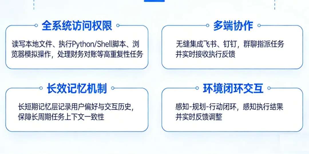 不同于仅能对话的传统 LLM,龙虾智能体是具备“手”和“脚”的执行者 :